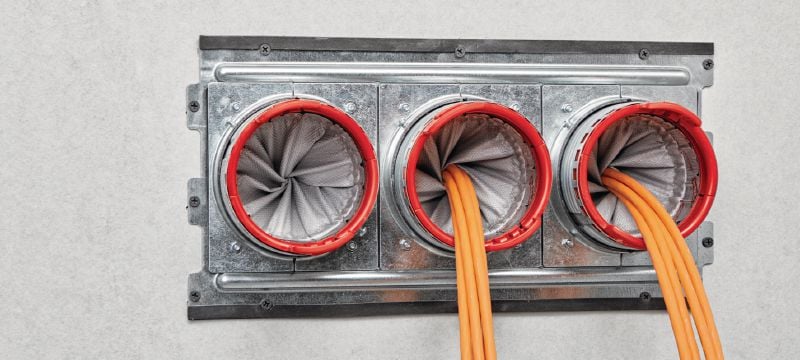 Brandskyddsram som sätts direkt mot ytan eller bultas fast, ökar antalet brandskyddshylsor och förenklar kabelhantering