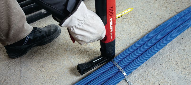 Krutdriven bultpistol som är helautomatiskt, kompakt och skjuter bandad spik