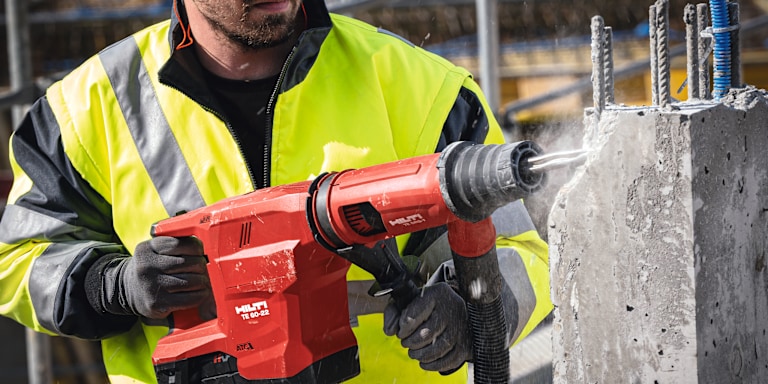 Oavsett vilken maskin du väljer är dammhantering kritiskt för både hälsa och sikt. Hilti erbjuder integrerade dammsugarenheter (DRS) till både borrhammare och slagborrar som suger upp dammet direkt vid borrhålet – en standard i modern, professionell byggmiljö.